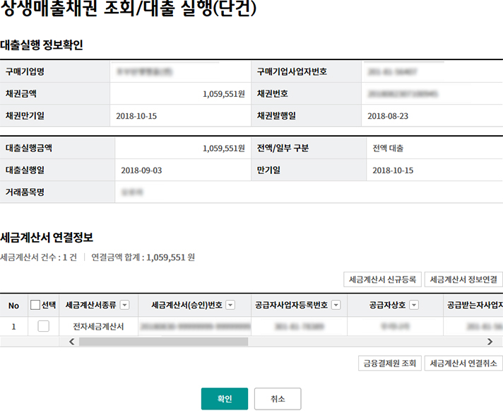 승인 명세 조회 및 선입금/벤더입금(대출)실행