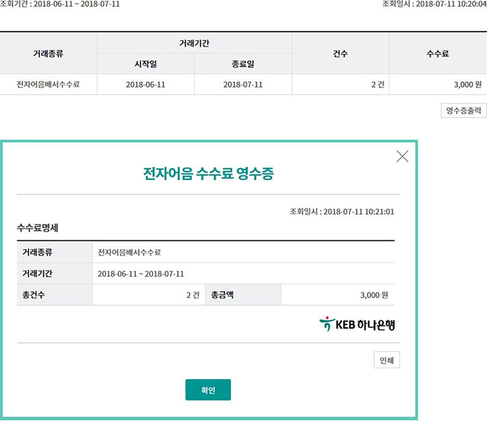 Step 2. 조회된 내역에 대한 영수증출력이 가능합니다.